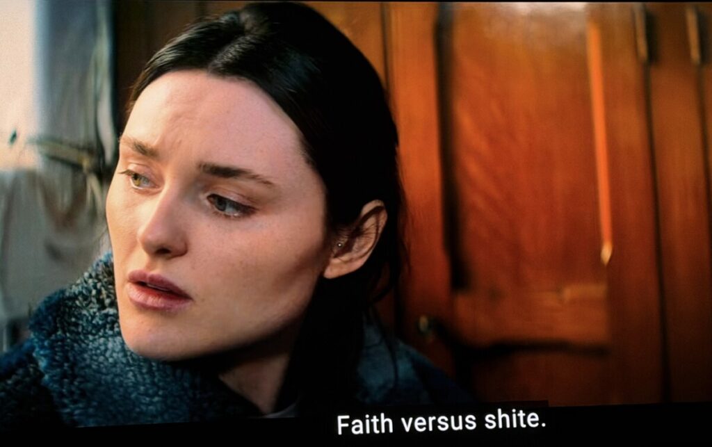 Last weekend, we finished the third season of Britbox’s “Blue Lights.” In the finale, a sub-theme was faith: believing in what’s possible. It really boiled down to the choices available. In the show, the line was “Faith or shite.” I liked it—wanted to remember it—and so I took a photo. It resonated because when others have asked how I’ve coped since the sky began falling a few years ago, how and why I still have “faith,” I’ve sometimes responded with, “Where else can I go?”